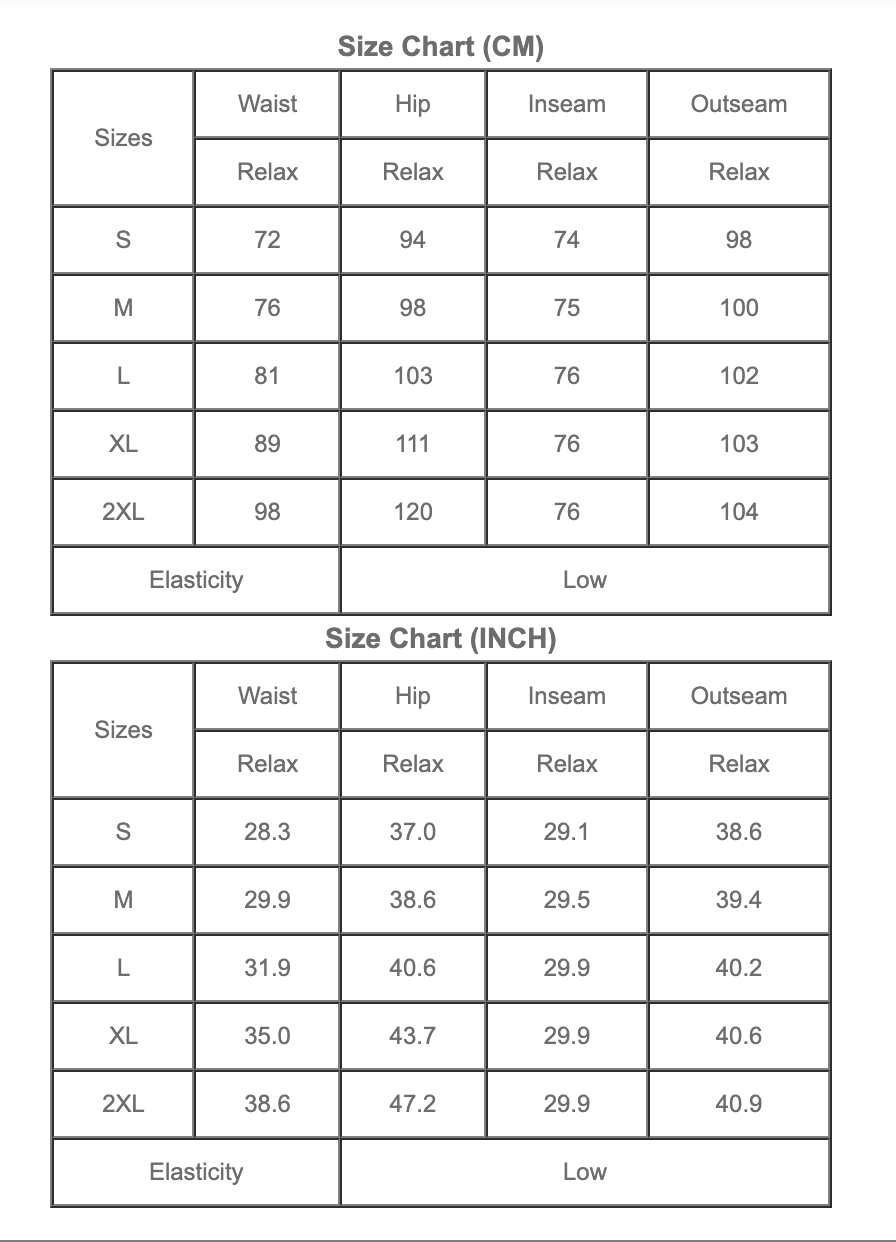 Sizing: