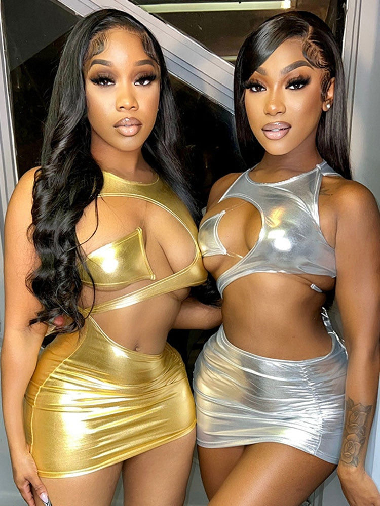Sexy Slim Hollow Out Bodycon Dress For Women Clothes O-Neck Folding Lace-Up Outfit Street wear Backless